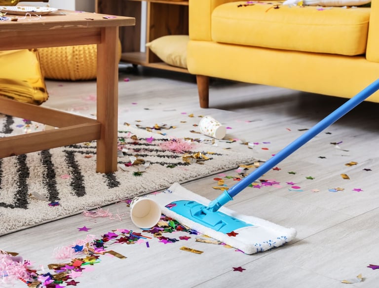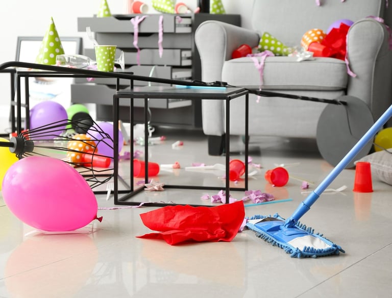 Quick post-event reset—trash removal, dish cleanup, floor mopping, and sanitizing high-touch areas—so your space looks spotless and guest-ready again.